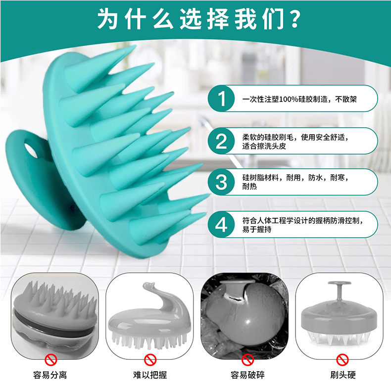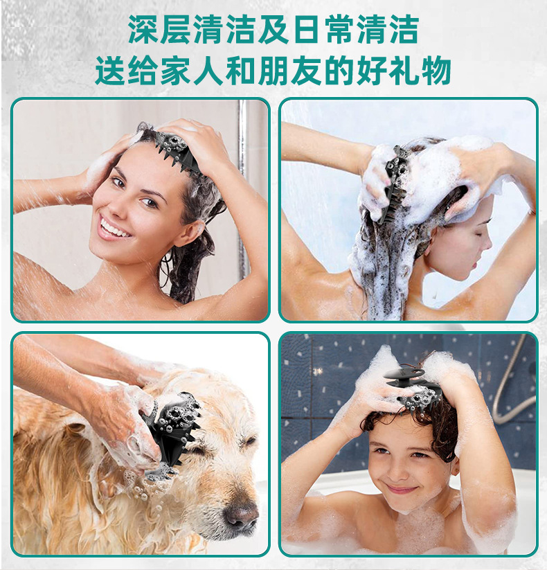 按摩洗头神器梳子 宠物清洁儿童搓澡纯硅胶洗头刷