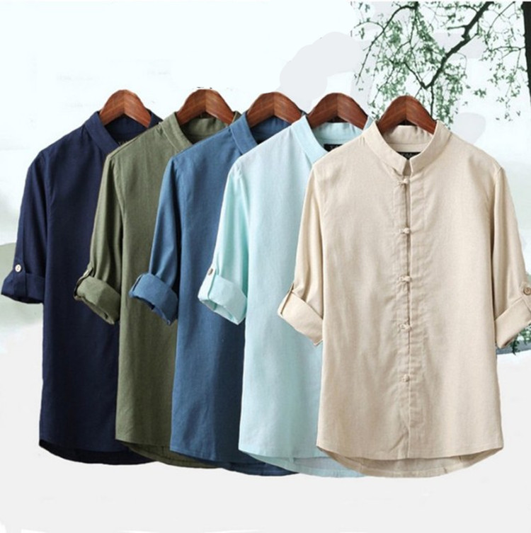 린넨 남성 빈티지 남성 7 분 소매 셔츠