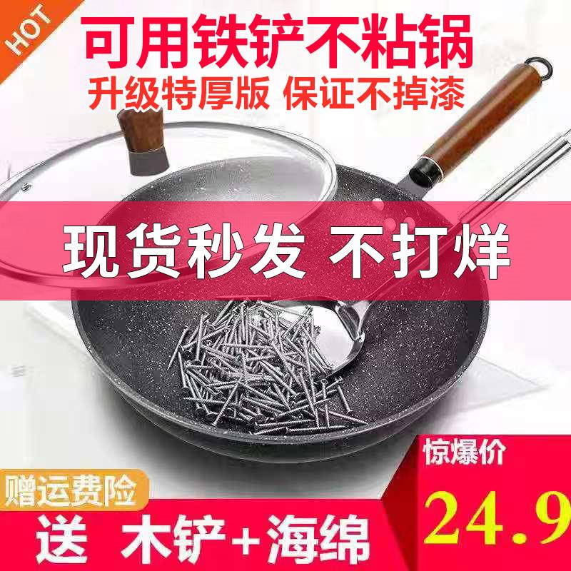 金刚麦饭石不粘锅炒锅家用无油烟炒菜锅平底煎锅电磁炉燃气灶通用