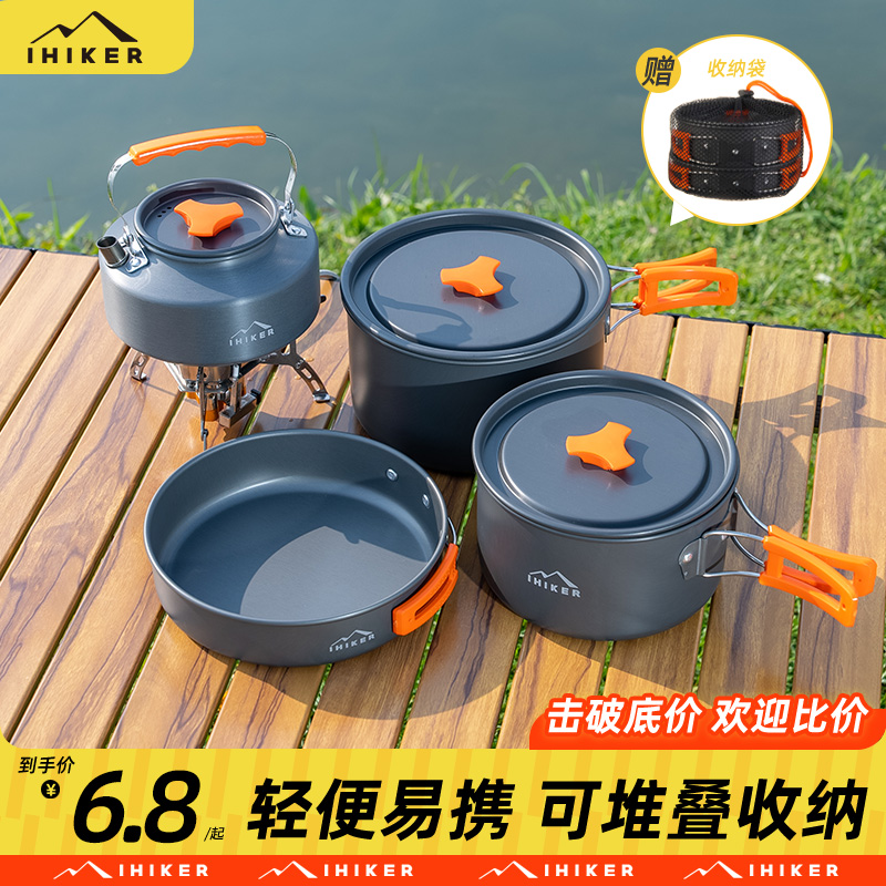 야외 냄비 및 팬 스토브 캠핑 장비는 주전자 조리기구 조리기구 세트 특수 냄비 야생 휴대용 프라이팬을 공급합니다.