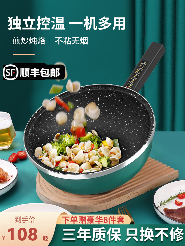 전기 프라이팬 올인원 플러그인 고출력 다기능 마이크로 압력 밥솥 마이판 스톤 논 스틱 가정용 프라이팬 및 팬
