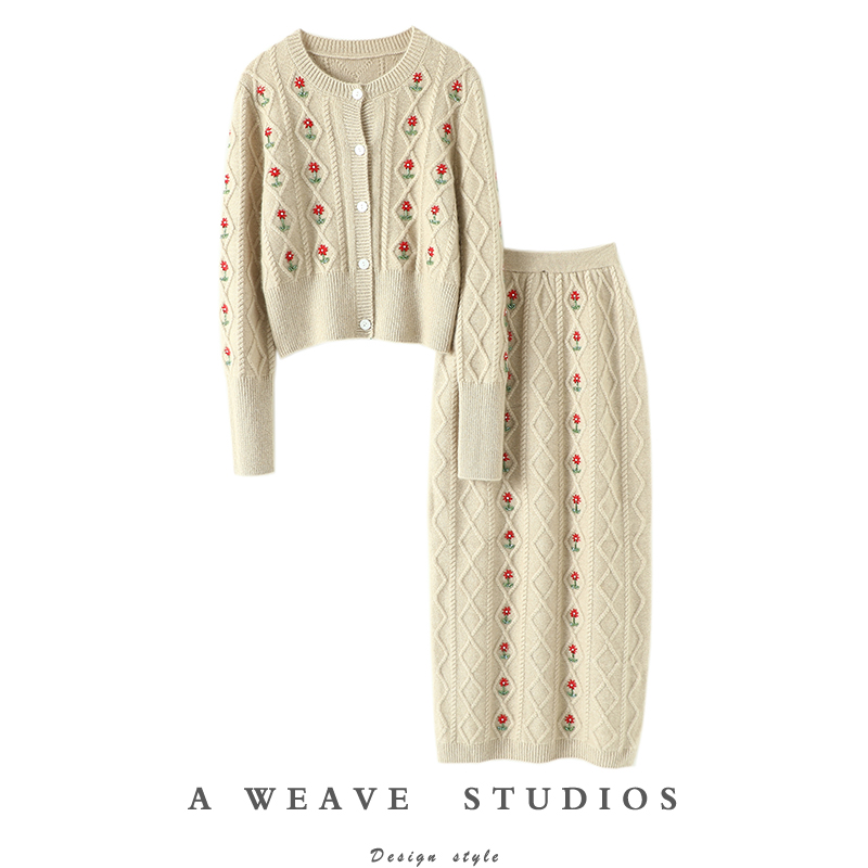 캐시미어 가디건 여성 퓨어 캐시미어 스웨터 롱 랩 스커트 세트