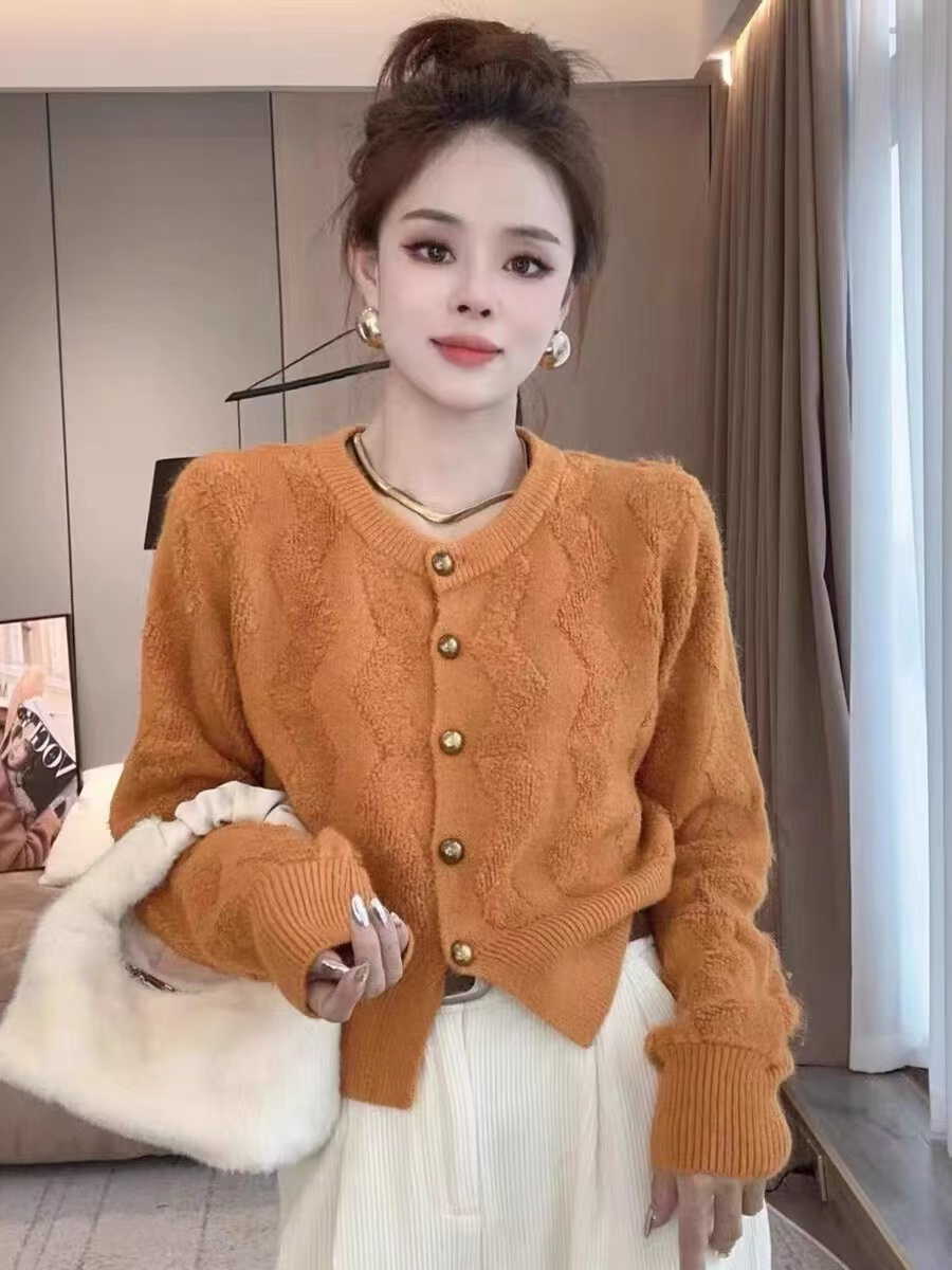 샤오시 스키니 솔리드 컬러 라운드 넥 카디건 스웨터