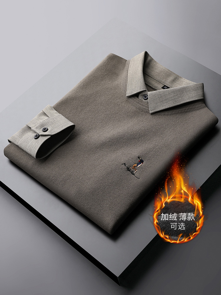 가벼운 비즈니스 긴팔 셔츠 칼라 거짓 투피스 점퍼 남성 가을 슬림 캐주얼 니트 탑 따뜻한 양모 스웨터