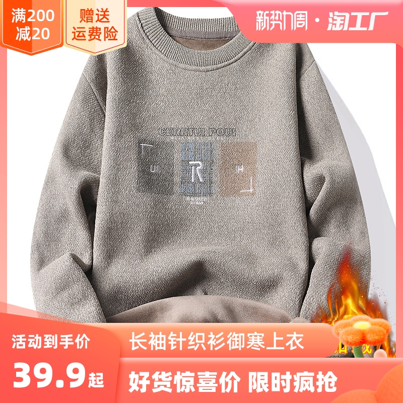가을과 겨울 새로운 자수 셔닐 점퍼 남성용 패딩 및 두꺼운 따뜻한 라운드 넥 긴팔 니트 스웨터 워머 탑스