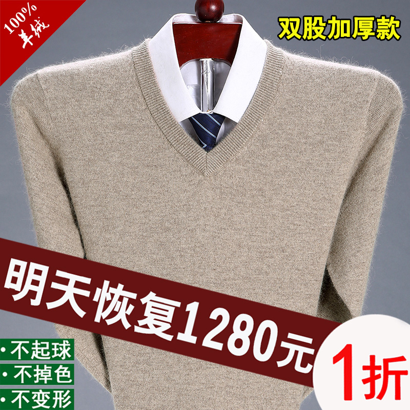 오르도스 100 캐시미어 스웨터 남성용 브이넥 바닥 니트 스웨터 라운드 넥 두꺼운 양모 스웨터 아버지 점퍼
