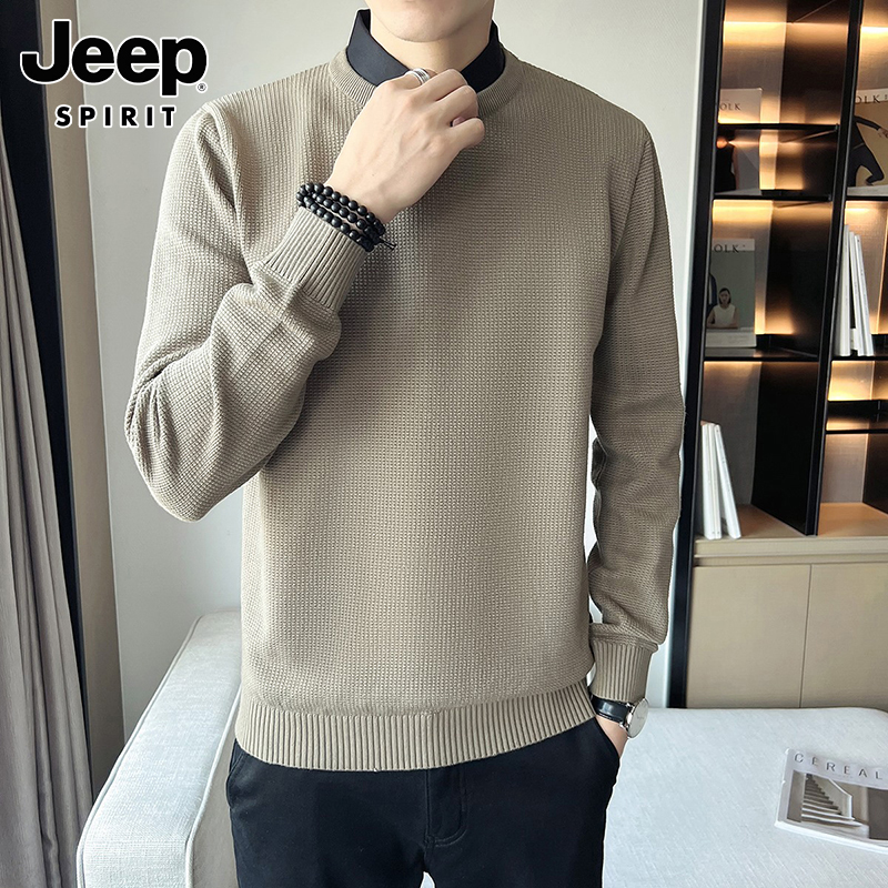 지프 지프 셔츠 칼라 점퍼 남성 가을 겨울 트렌드의 고급 감각의 슬림 페이크 투피스 니트웨어 남성 모델 세트