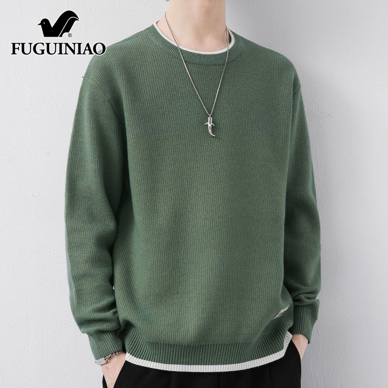 포춘 버드 가짜 투피스 점퍼 남성 라운드 넥 모직 의류 2023 봄 가을 새로운 트렌드 니트 스웨터 남성 의류
