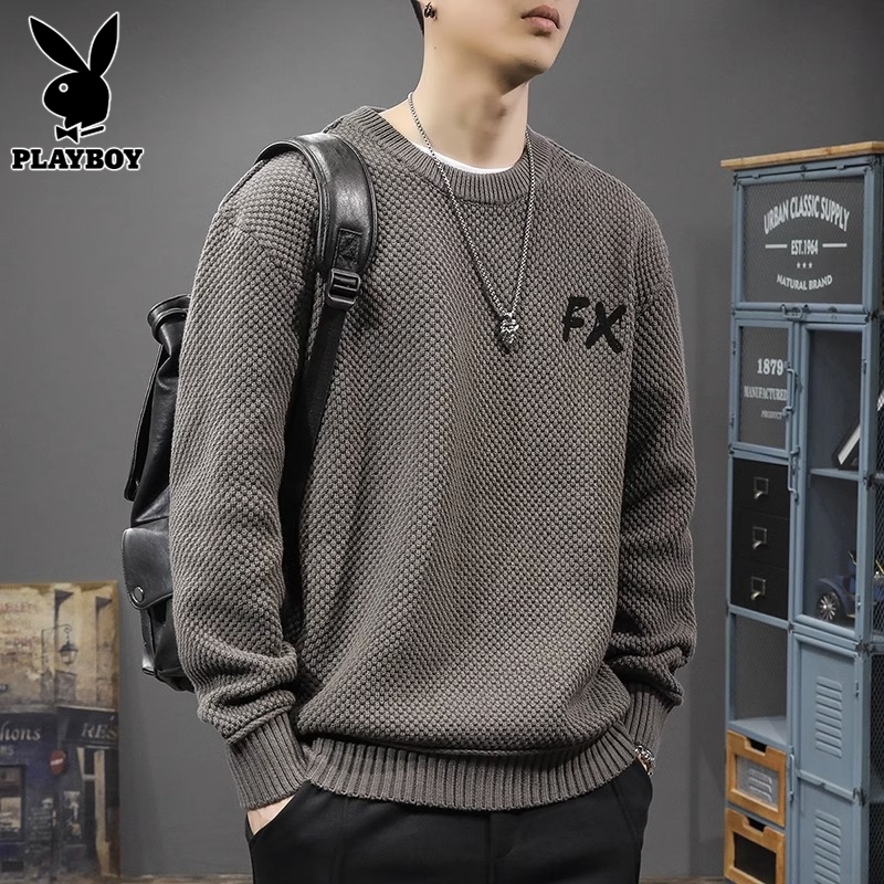 플레이 보이 라운드 넥 점퍼 남성 가을 새로운 게으른 느슨한 니트 바닥 셔츠 캐주얼 트렌드 라인 의류 남성