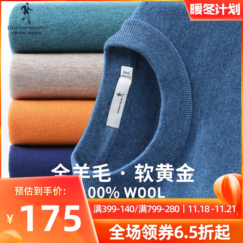 [100 % 순모] 늑대와 함께 춤을 추다 울 스웨터 남성용 라운드 넥 2023 가을 겨울 새로운 따뜻한 니트 점퍼