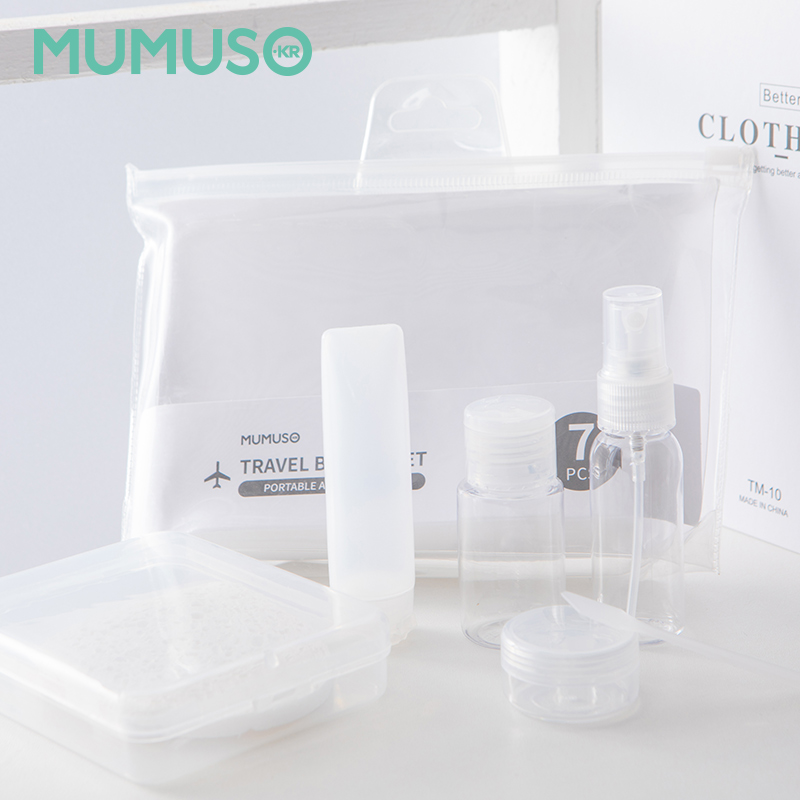 무무소/히비스커스 라이프 실리콘 코스메틱 바디 로션 여행용 디스펜서 병 7피스 클렌징 세트