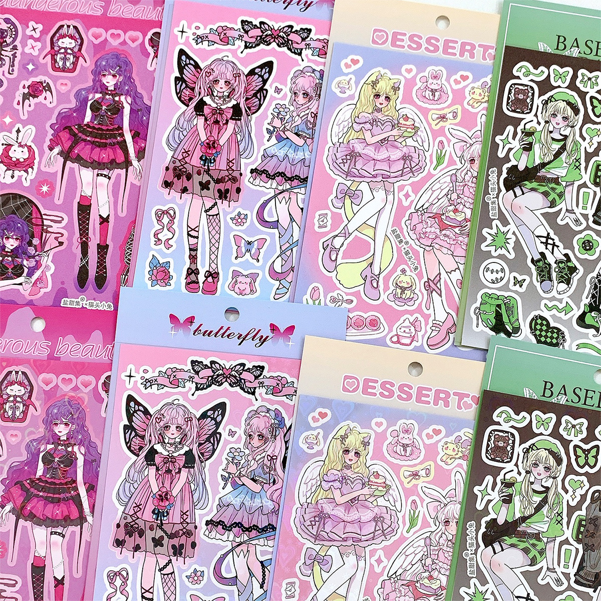 언어 도로 문구 한국어 인 하라주쿠 소녀 성장 행복 구 카드 스티커 귀여운 달콤한 멋진 Y2K 스타일 애니메이션 캐릭터 경치 구 카드 + 버블 프라이밍 스티커 스티커 가치 세트