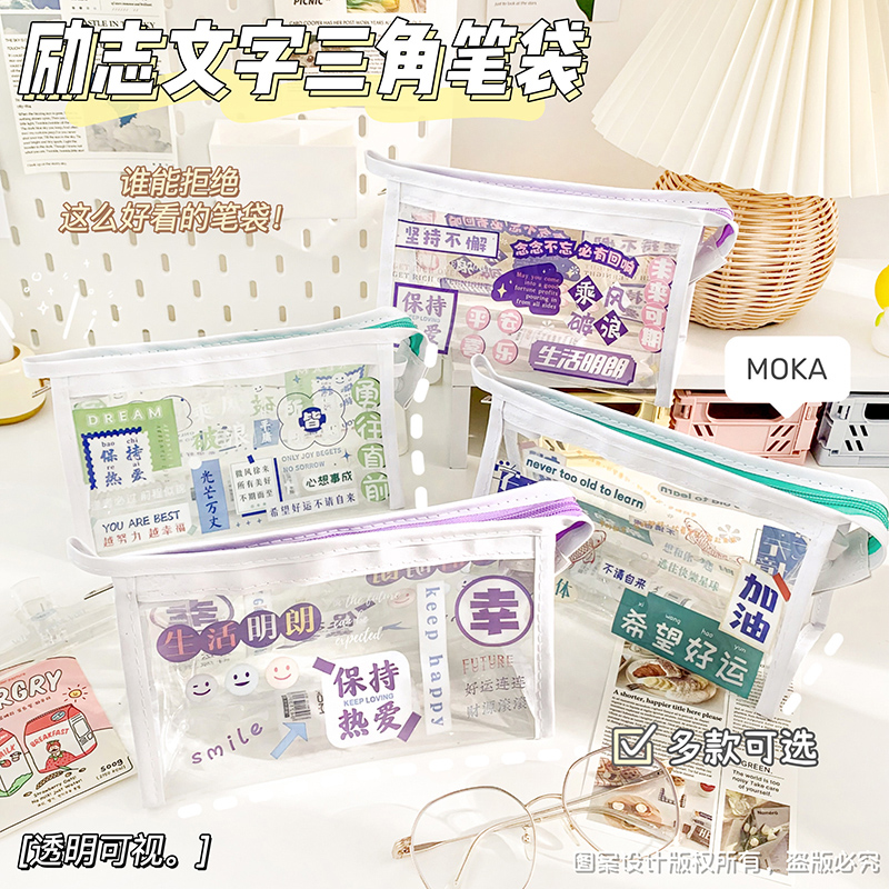 영감 텍스트 투명 연필 파우치 대용량 심플 인 고가 초등학생 문구 파우치 일본 귀여운 소녀 지퍼 파우치 중학생 보상 문구 상자 귀여운 작은 신선한 연필 파우치
