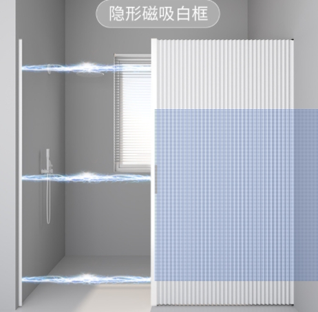 浴室磁吸隐形浴帘 免打孔折叠干湿分离套装 卫生间防霉隔断门帘子