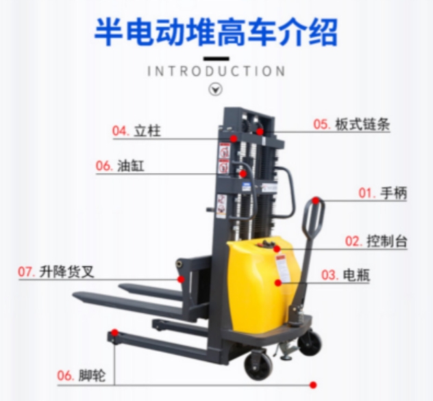 2吨2米半电动液压堆高车 半电动电瓶叉车 小型液压升高机