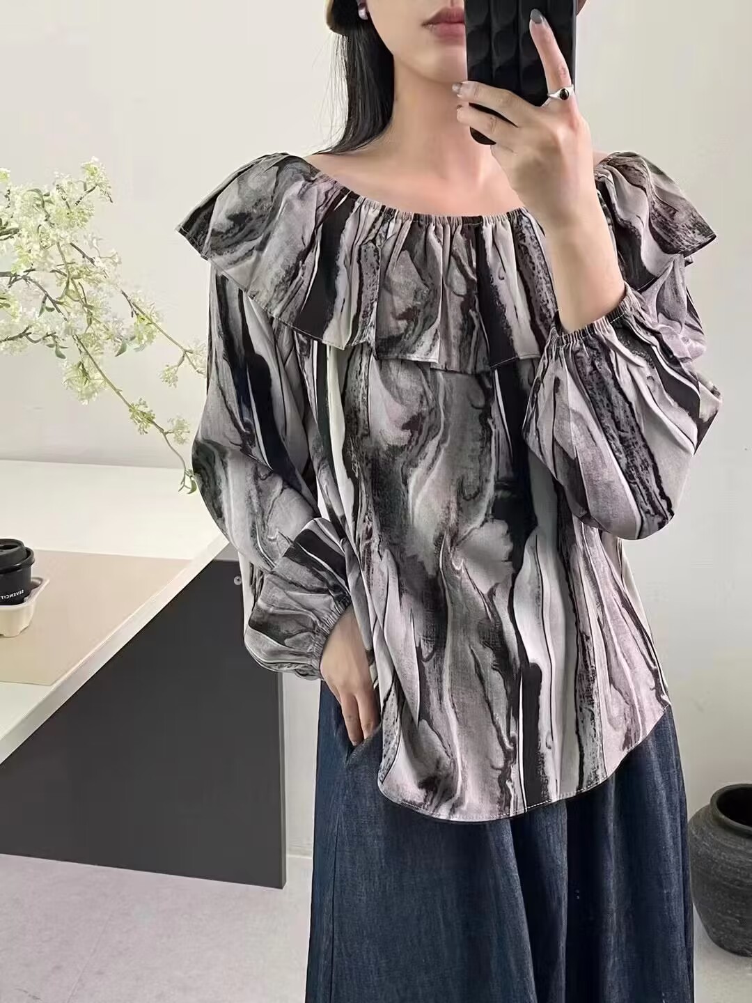 레트로 프릴 주름 셔츠