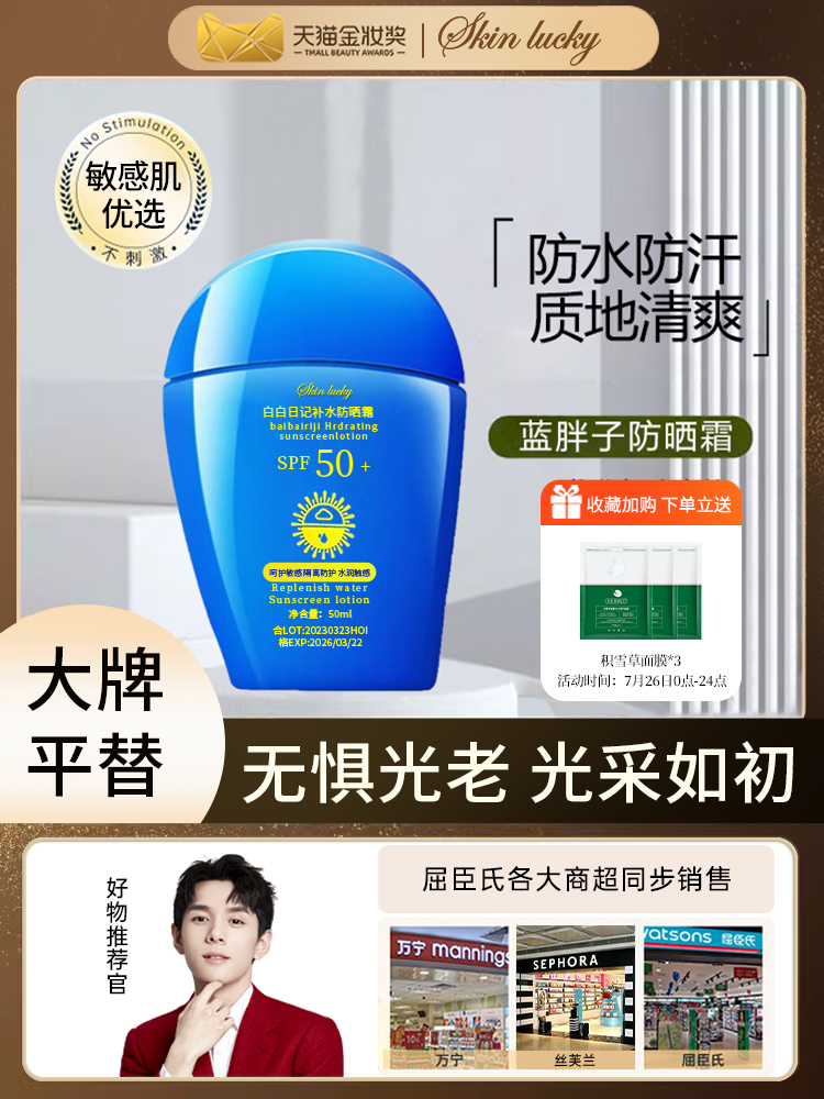 블루 지방 자외선 차단제 얼굴 바디 격리 야외 방수 땀 상쾌한 여성 남성 학생 군사 훈련 공식 정품 제품