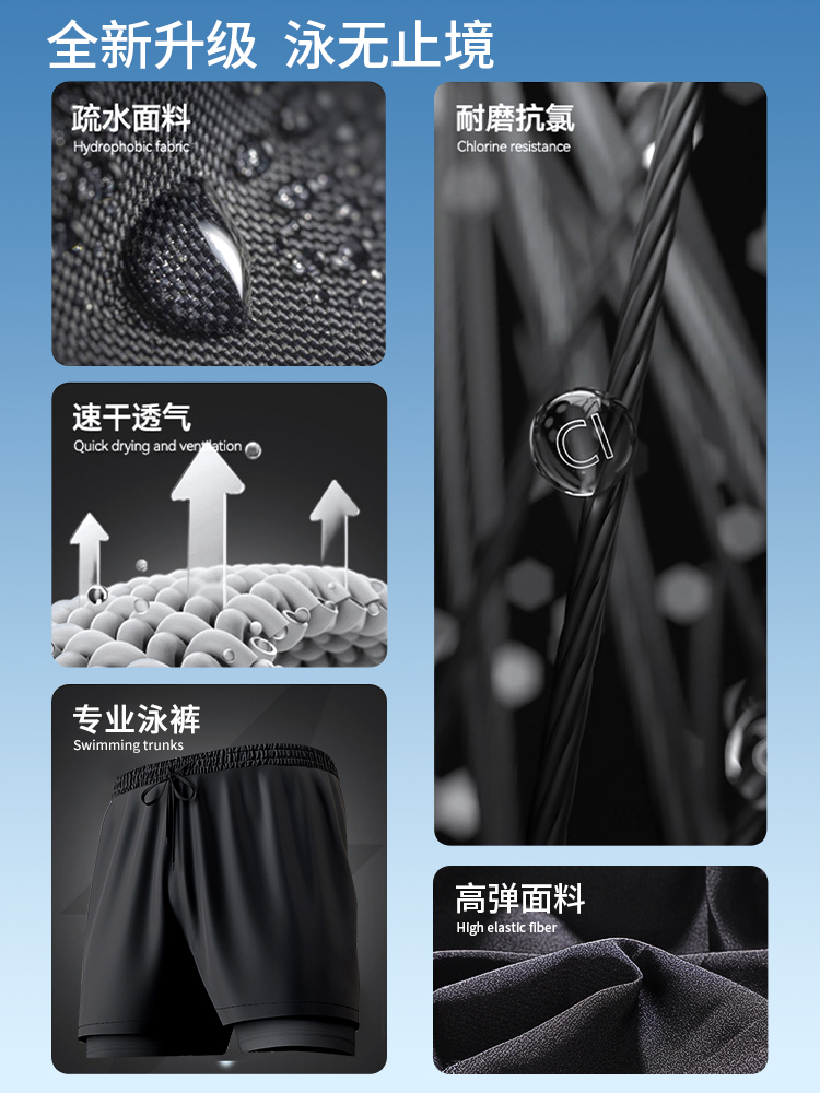 남성용 수영복 전문 더블 레이어 속건성 당황 방지 수영복 스파 비치 트렁크 수영 세트 장비 1064