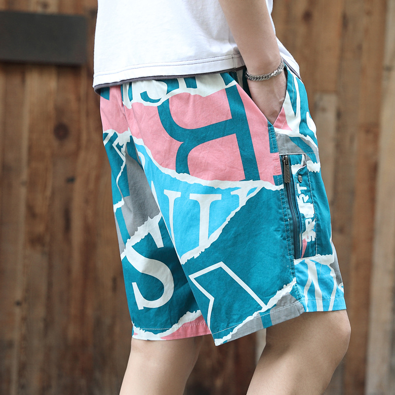 남성 캐주얼 반바지 여름 조수 프린트 비치 팬츠 포켓 지퍼 조수