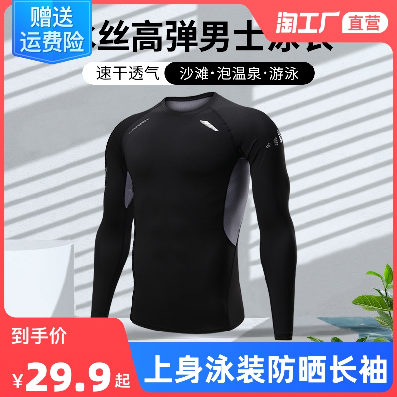 수영복 남성용 상의 남성용 담그기 소년용 퀵 드라이 슈트 반팔 수영 장비 상체 수영복 자외선 차단제 긴팔 서핑