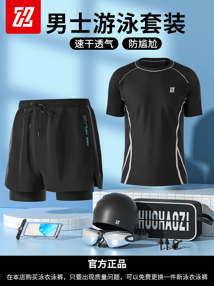 수영 의상 남성 전문 당황 방지 대형 느슨한 더블 레이어 수영 트렁크 자외선 차단제 남성 수영 의상 정장 2023 새로운