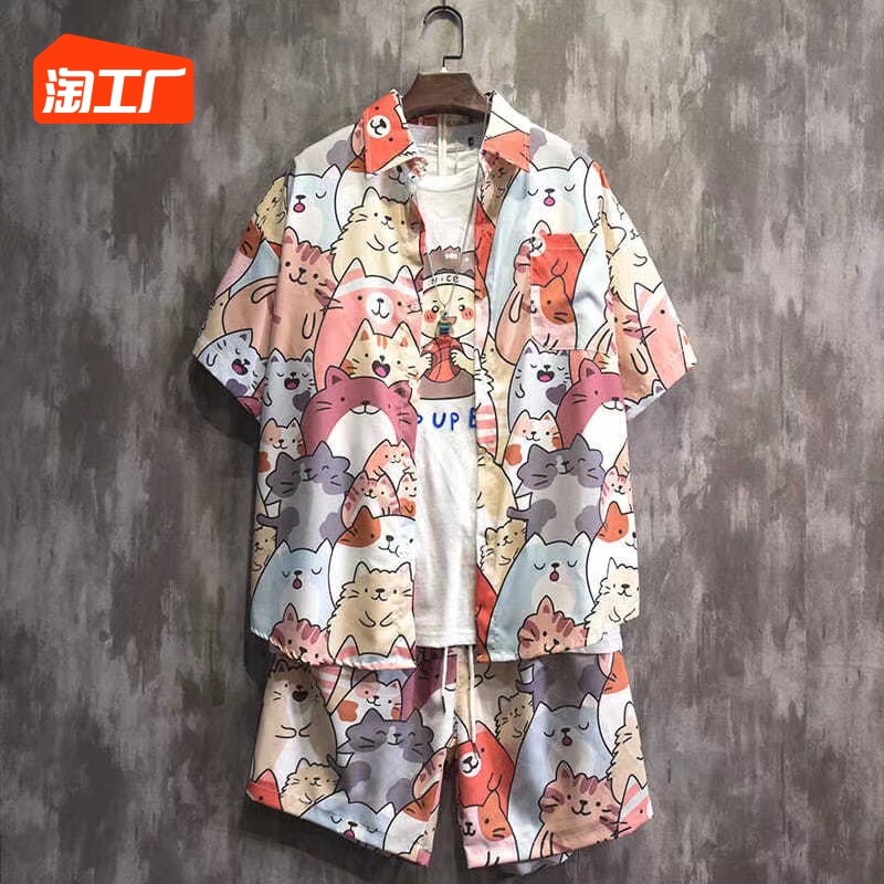캐주얼 하와이 셔츠 반팔 여름 트렌드 느슨한 일본 갱스터 잘 생긴 해변 커플 비치 셔츠 남성 및 여성