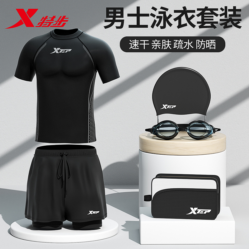 터보 수영 의상 남성용 당황 방지 느슨한 수영 트렁크 남성용 수영 장비 전체 세트 소년 탑 수영복 정장