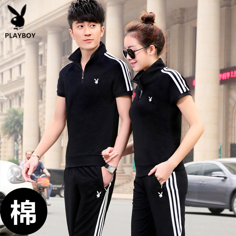 플레이 보이 정장 남성 코튼 여름 캐주얼 반팔 바지 스포츠웨어 여성 커플 티셔츠 반바지 투피스 T