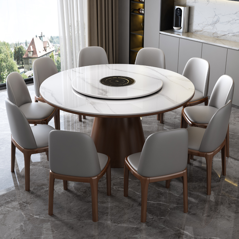 가벼운 고급 슬레이트 식탁과 의자 조합 현대적이고 단순한 고급 원목 가정용 소형 가정용 유도 밥솥과 턴테이블 원형 테이블