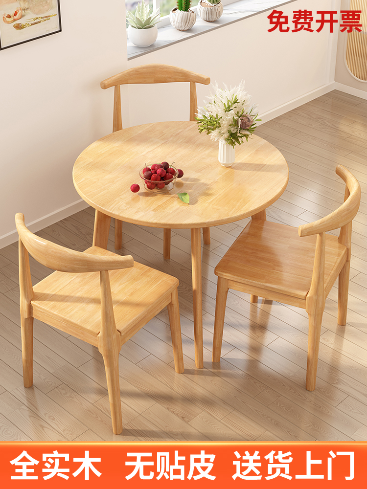 간단한 단단한 나무 작은 원형 테이블 발코니 작은 테이블과 의자 가정용 원형 식탁 협상 리셉션 커피 테이블 레저 테이블과 의자 조합