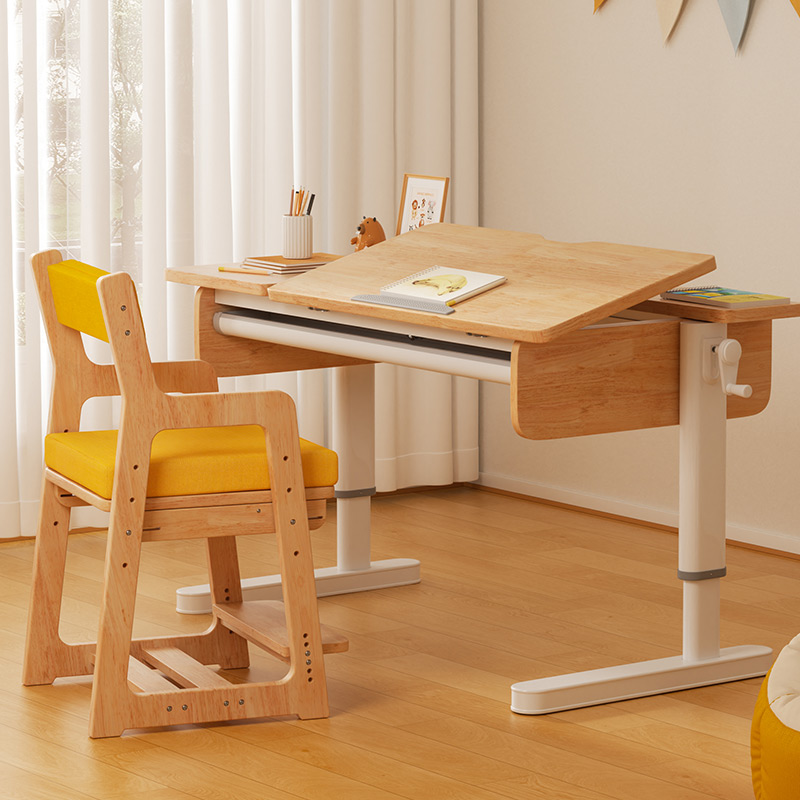 아름다운 어린 시절 어린이 연구 테이블 초등학생을위한 단단한 나무 책상 가정용 쓰기 테이블은 테이블 의자 세트를 들어 올릴 수 있습니다.