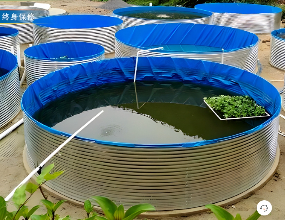 镀锌板鱼池大型户外帆布鱼池圆形组装蓄水池高密度养鱼池
