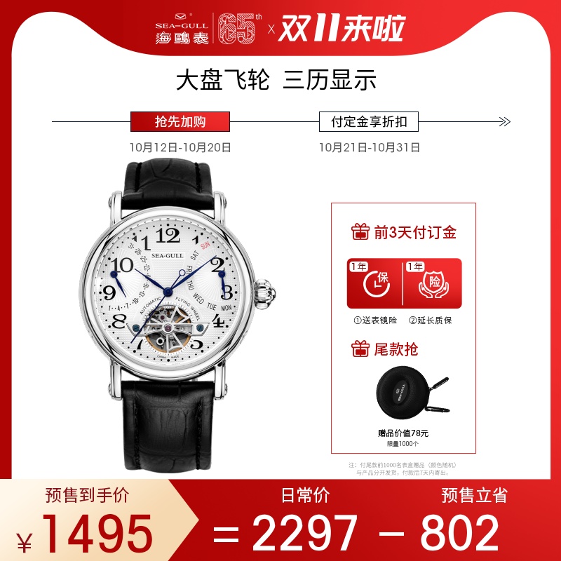 갈매기 시계 남성용 자동 기계식 시계 비즈니스 스켈레톤 플라이휠 벨트 남성용 시계 M170S 플라이휠