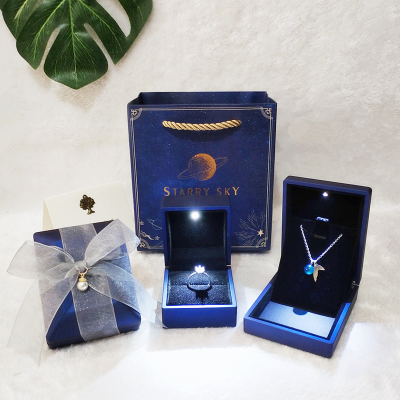 라이트 쥬얼리 박스 목걸이 펜던트 다이아몬드 반지 팔찌 시계 쥬얼리 포장 선물 빈 상자가있는 고급 LED