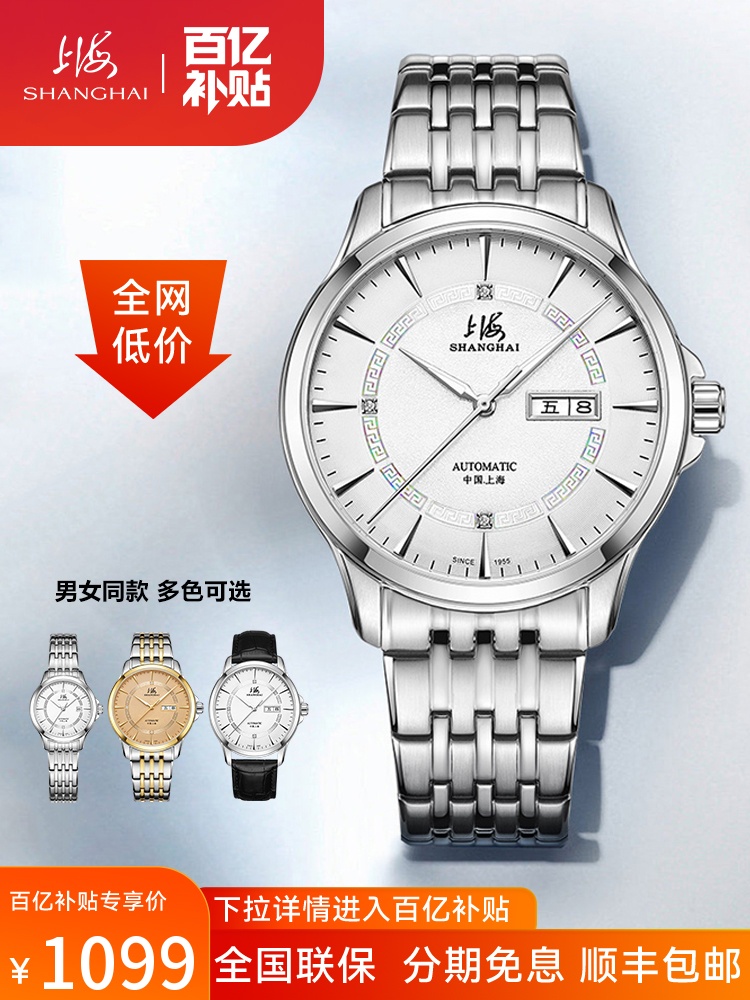 상하이 시계 남성 기계식 시계 내셔널 시리즈 심플 비즈니스 클래식 여성 손목시계 커플 시계 3069
