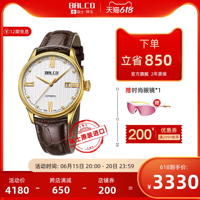스위스 발코 오리지널 수입 리얼 다이아몬드 오토매틱 기계식 무브먼트 남성용 시계 가죽 스트랩 플래그십 샵 시계 AM3456