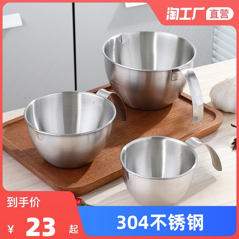 304 스테인레스 스틸 손잡이 요리 그릇 눈금이 매겨진 거품기 그릇 주방 베이킹 믹싱 그릇 샐러드 그릇 작은 우유 팬
