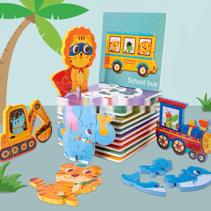 어린이 나무 3D 동물 직소 퍼즐 12 조각 】 1-3-6 세 아기 계몽 조기 교육 교구 직소 장난감 휴일 선물 선물 집중력 운동 3 조각 정장