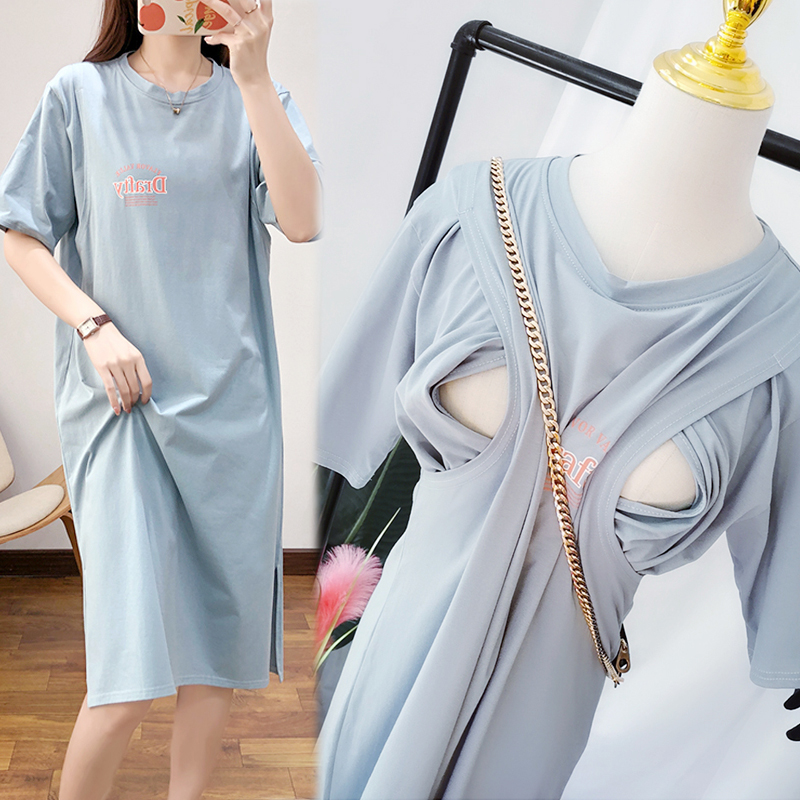 임산부 잠옷 봄과 가을 월간 의류 여름 얇은 면화...