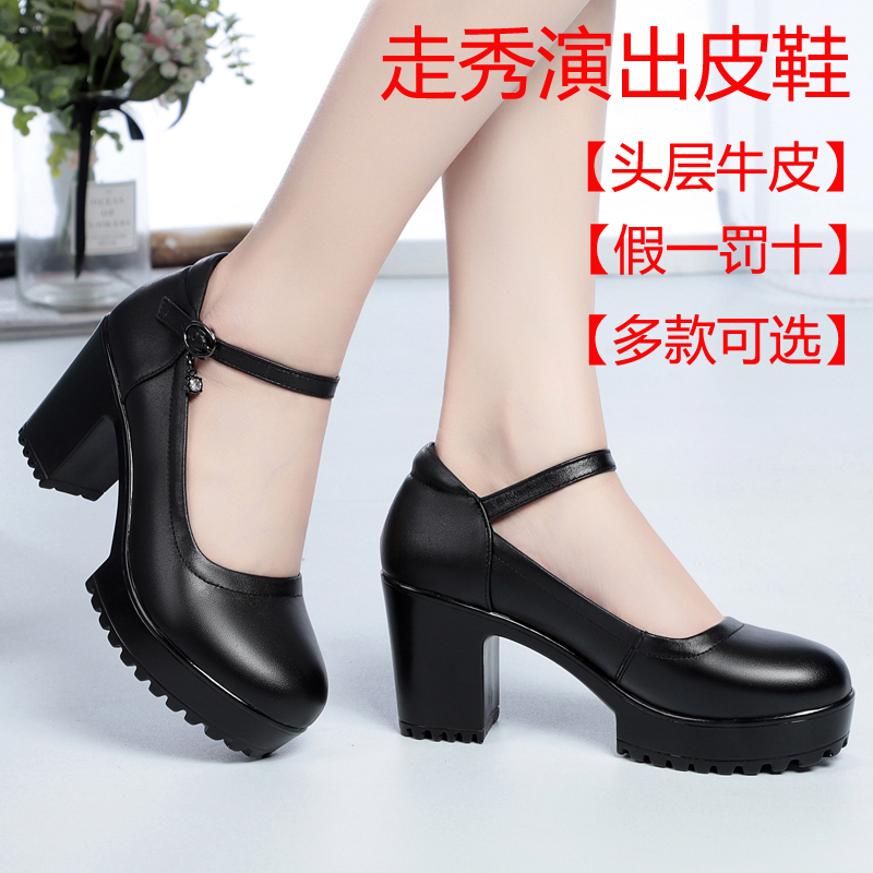 부드러운 소가죽 모델 런웨이 하이힐 가죽 신발 가죽 원 버클 싱글 슈즈 여성 방수 플랫폼 대형 작업 정장 신발