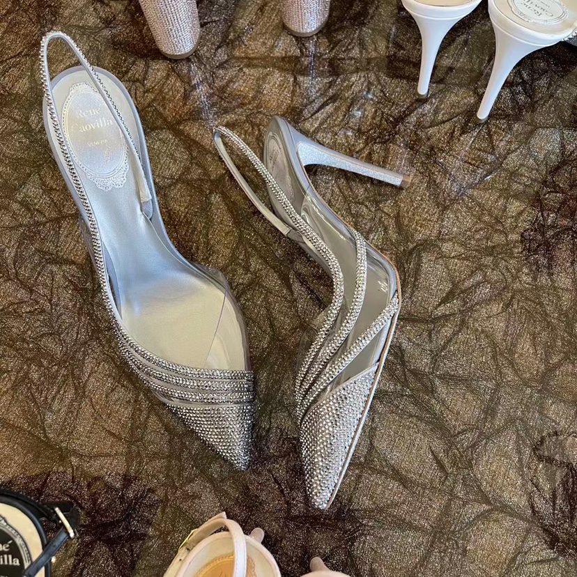 정품 르네 카빌라 RC 풀 다이아몬드 물 흐름 패턴 디너 공식 하이힐 샌들 여성 웨딩 슈즈