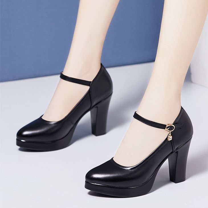 청삼 모델 티 스테이지 런웨이 슈즈 하이힐 두꺼운 바닥 방수 플랫폼 두꺼운 싱글 슈즈 대형 사이즈 진짜 부드러운 가죽 작업 여성용 신발