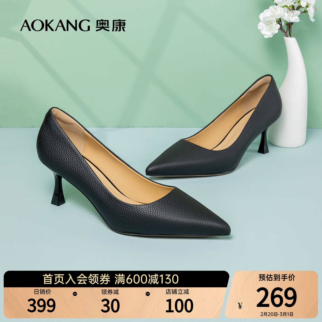 AuCom 여성 신발 봄과 가을 여성 싱글 슈즈 가죽 뾰족한 발가락 등자 가죽 신발 비즈니스 정장 고급 하이힐