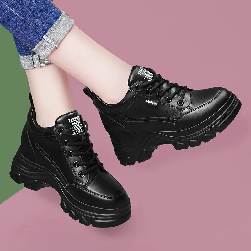 봄과 가을 캐주얼 가죽 신발 여성 두꺼운 바닥 팝 신발 여성 2021 새로운 여성 신발 싱글 신발 부드러운 가죽 스포츠 신발 여행 신발