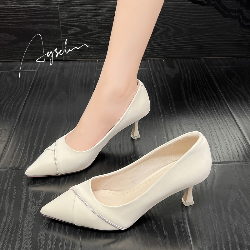 뾰족한 하이힐 하이힐 여성 여름 2023 새로운 가벼운 성숙한 정장 싱글 슈즈 얕은 입 높이 샌들 기질 여성 신발