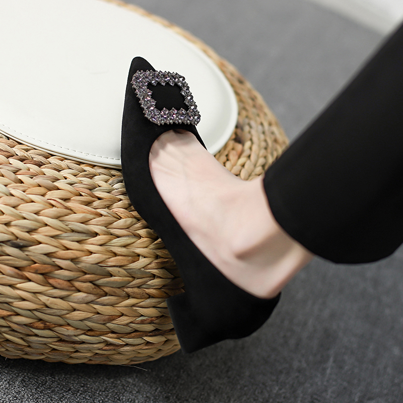 2023 새로운 여성 작업 뾰족한 머리 두꺼운 굽 모조 다이아몬드 로우 힐 작업 싱글 슈즈 여성 백 공식 하이힐 여성