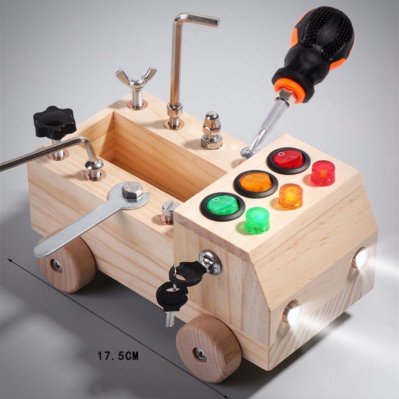 몬테소리 조기 학습 교육 장난감 나사 조이기 너트 작업대 교구 어린이 손과 눈의 움직임 조정 바쁜 버스