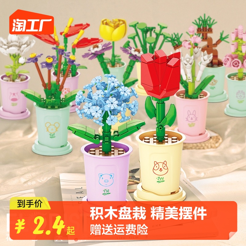 블록 꽃 쟁반 식물 데스크탑 작은 장식품 꽃다발 분재 직소 퍼즐 퍼즐 장미 퍼즐 퍼즐 장난감 소년 소녀 선물