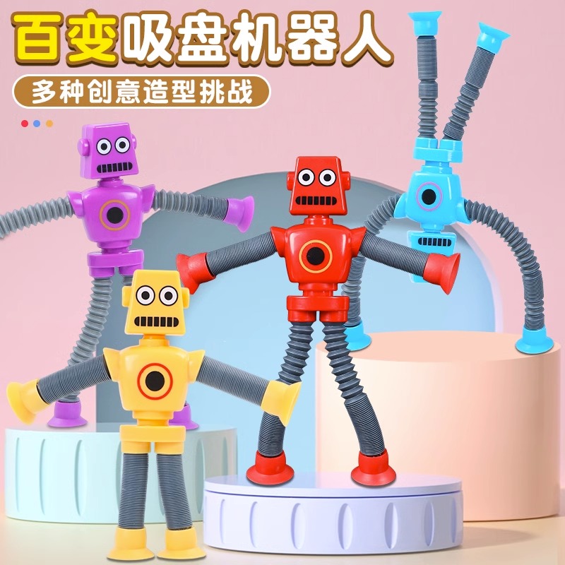빛나는 백 체인지 로봇 텔레스코픽 튜브 어린이 만화 빨판 기린 소년 스트레치 창의적인 감압 장난감
