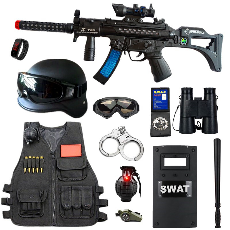 어린이 작은 경찰 장난감 세트 검은 고양이 보안관 모자 소년 특수 부대 야외 SWAT 장비 장난감 총